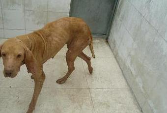 ESTA PERRITA HA ENTRADO HOY EN LA PERRERA, HA SIDO RECOGIDA POR LOS LACEROS EN LAS CASAS AISLADAS DE GÉVORA. NO TIENE DIENTES DELANTEROS Y LOS COLMILLOS LOS TIENE LIMADOS. LA HEMOS SACADO RÁPIDAMENTE PARA QUE RECIBA ATENCIÓN VETERINARIA YA QUE TIENE LA PIEL FATAL, SE HA DESCARTADO SARNA Y LEISHMANIA. TIENE UNA DERMATITIS AGUDA SEVERA, SEGURAMENTE SE LE HA INFECTADO POR NO HABERSE TRATADO NUNCA. HA DADO POSITIVO EN FILARIA, POR LO QUE ES URGENTE UNA CASA DE ACOGIDA PARA EMPEZAR EL TRATAMIENTO DE LA PIEL, QUE CONSISTE EN UNOS BAÑOS CON UN CHAMPÚ ESPECIAL Y UNA VEZ CURADA SE EMPEZARÍA CON EL TRATAMIENTO DE LA FILARIA.