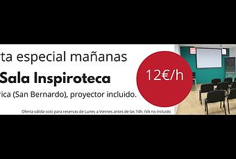 Te presentamos la oferta especial de la Sala Inspiroteca en colaboración con SpacesON: 12€/hora (+IVA) para disponer de una sala con acceso a pie de calle, luz natural y aforo aproximado de 25 personas en teatro.