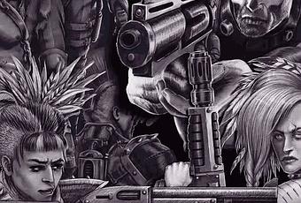 -El tratamiento artístico del juego ha caído mucho: Muchísimo. Con la salida del juego en 2017 salieron muchas ilustraciones de todo tipo, incluidas grandes ilustraciones a color, como las que mostraban los enfrentamientos entre Escher y Goliath de la caja básica, como las que os dejo aquí. Pero con el paso del tiempo, GW se ha limitado a retratos color o en blanco y negro de pandilleros, y el resto ilustraciones en blanco y negro de tamaño no superior al medio, ilustraciones que son casi bocetos y foto-montajes. Una pena, la verdad.A mi me hubiera gustado ver ilustraciones como estas pero con otra bandas de protagonistas, ya que son muy inspiradoras.
