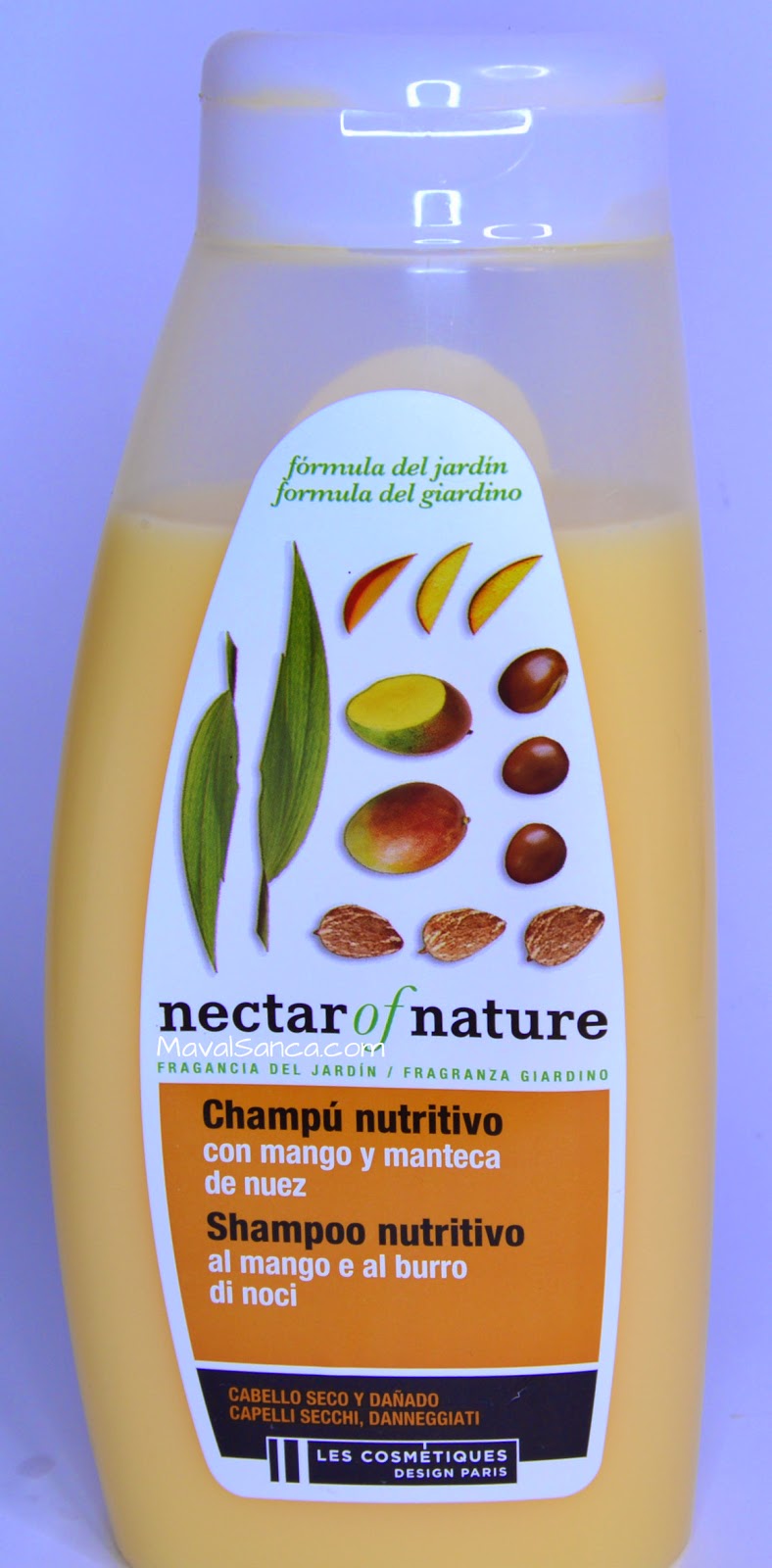 Sus ingredientes activos son el mango y la manteca de nuez.Fue el primero que compré.Me encanto su olor dulce pero ligero que perdura en el pelo después del lavado.Deja el pelo EXTREMADAMENTE SUAVE y bonito.Además, al menos en mi pelo, consigue que no haga falta acondicionador.Se desenreda perfectamente.Its active ingredients are mango and shea nut.It was the first one I bought.I loved the sweet but light smell that lingers in your hair after washing.Lets an EXTREMELY SOFT and nice hair.Moreover, at least in my hair, don't need hair conditioner.It can be unravel perfectly.Nectar of NatureChampú Resplandor Profundo
