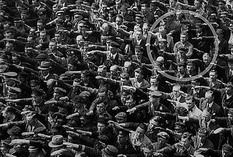 August Landmesser fue un trabajador alemán de la empresa Blohm+Voss, fundada el 5 de abril de 1877 y dedicada a la construcción de barcos y otros trabajos de ingeniería. En la foto que hoy subimos a esta sección, August aparece cruzado de brazos en medio de centenares de obreros alemanes que hacen el saludo nazi. La imagen se encuentra expuesta en el centro de documentación "Topografía del Terror", ubicado donde se localizaban hasta 1945 las centrales de la Gestapo, las SS y el departamento gubernamental de la Alemania nazi, encargado de la seguridad del estado. August nació en 1910 y estuvo prisionero desde 1938 por "deshonra de la raza", al casarse con Irma Ecler, una judeoalemana. Por una coincidencia, en 1991 su hija Irene descubrió la fotografía en un periódico antiguo. La historia de la pareja se mantuvo en secreto hasta 1996 en que fue dada a conocer por Irene. La pequeña había sido llevada a un orfanato tras separarla de la madre y más tarde fue adoptada. Su hermana tuvo mejor suerte, vivió con su abuela materna.