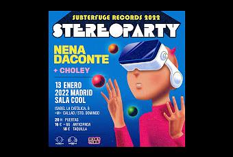 La Stereoparty de este año se hará en Enero en la Sala Mon de Madrid con dos grandes proyectos.La Stereoparty vuelve el 13/1 a Madrid con un buen directo donde Nena Daconte y Choley serán los proyectos principales.En este show en la Sala Cool previsto para el 13/1 encontraremos en el escenario a Nena Daconte presentando un directo muy especial donde quizá avance parte de los temas que salen este año. Choley es el otro proyecto que se sube al escenario y que quiere presentar parte de los temas que conocemos y los temas que estarán por llegar este año. Este show será la Stereoparty de este año.