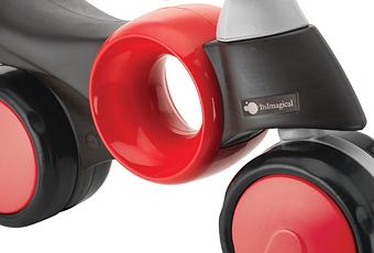 El correpasillos tiene ruedas anchas para impedir que el niño pueda caerse sobre uno de sus costados haciendole difícil incorporarse, además todo su formato está pensado para la comodidad infantil, cuenta con un manillar corto con empuñaduras especialmente adaptadas con revestimiento de goma suave para un mejor agarre, teniendo en cuenta que tienen las manos pequeñas y la piel sensible.