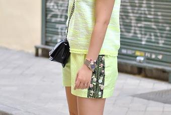Buenos días a todos!!Desde siempre he sentido una enorme atracción por los colores neón, las prendas brillantes o los cristales. Reconozco que soy un poco 'urraca' y siempre me lanzo a por lo que me llama la atención desde la percha, porque me da muchísima pereza rebuscar en las tiendas.Eso me pasó en New York, cuando estuve en el famoso Century21. Imaginaos unos grandes almacenes, llenos de prendas y complementos de grandes firmas como Lanvin, Moschino, Giambattista Valli o Dolce & Gabbana, entre muchísimas más, y con unos precios de ganga total. El resultado de mi incursión fue que, tras el agobio inicial al ver tanto donde elegir, tuve que darme varias vueltas por sus pasillos, mirando de lejos los percheros, hasta que estos shorts neón de Essentiel llamaron mi atención. Me encanta el detalle de las flores de pailletes rosa pastel de sus laterales, en contraste con el negro de los detalles y el amarillo neón. Me parecen una de esas prendas super especiales que no hay que dejar escapar, así que se vinieron conmigo a España.Hoy los he combinado con mi top de tweed neon favorito y complementos en negro para que el resultado del look sea sporty, pero 100% sofisticado. ¿Que os parece el resultado?Un besazo enorme y feliz miércoles!