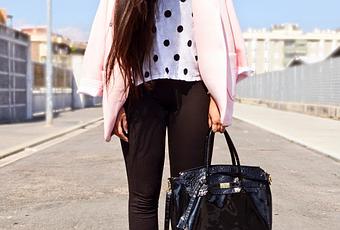 Hola guapas! Ya está aquí el otoño y por fin os enseño outfit! Tenía ganas de que se acabara un poco el calor y empezar a ponernos manguita, aunque por Córdoba todavía no se aguantan demasiado las chaquetas (¡con lo que me gustan!). En este look estreno chaqueta de neopreno en color rosa pastel que me encanta como queda combinada con el negro, y un crop top de lunares que aportan algo de vida gracias a su estampado. ¿Qué os parece? Espero que os guste y que tengáis un feliz lunes. Muack