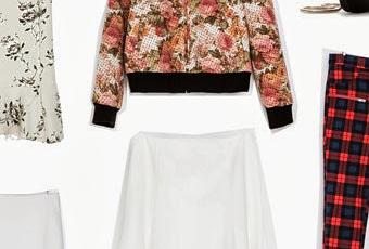 Vestido de flores 39.95 eurosCazadora de flores 39.95 eurosBolso de mano negro 29.95 eurosFalda blanca corta 22.95 eurosFalda blanca midi 39.95 eurosPantalón cuadros 25.95 euros