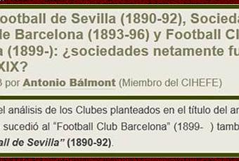 “Siguiendo con el análisis de los Clubes planteados en el título del artículo, parece que lo mismo que le sucedió al “Football Club Barcelona” (1899- ) también sucede con el “Club de football de Sevilla” (1890-92).”