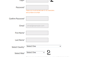 1) Primero elegimos un nombre de usuario. Luego contraseña, volvemos a tipear la contraseña, ingresamos un mail, completamos con nuestro nombre y luego con nuestro apellido. Luego seleccionamos nuestro país. Y 2) Seleccionamos la opción "reviewer" porque somos reseñadores :)