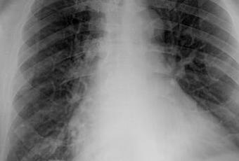 Silueta cardiomediastinica, con engrosamiento. Corazón, con aumento de su tamaño.
