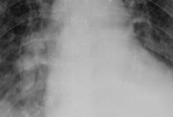 Silueta cardiomediastinica, con aumento del tamaño cardiaco.