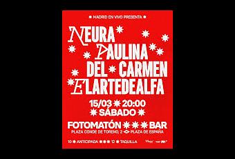 En unos días podremos ver a tres proyectos en el Fotomatón Bar en directo, este show será en unos días. Son tres formaciones las que nos esperan el 15/3 en el Fotomatón Bar, una fecha con Neura, Paulina del Carmen y con Elartedealfa en esta sala madrileña. Neura nos regalarán sus canciones, un show en Madrid donde Lucía García presentará esa propuesta nacida en Valencia y que se está exportando al mundo. Paulina del Carmen por su parte es una artista que llega desde Granada y que está preparando una serie de canciones de lo más interesantes. Elartedealfa es el proyecto de Alfonso, un proyecto nacido en Linares que está creando poco a poco una historia sonora que se presentará en este directo.