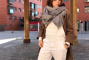 Peto denim/denim jumpsuit; Mango, Camiseta/Tee; Stradivarius AW´19Sneakers/Zapatillas; Zara KidsAbrigo/Coat; Top Shop (old)Pañuelo/Scarf; H&M Man