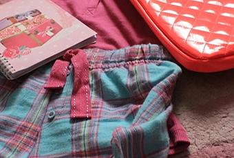 En cuanto a las adquisiciones de Primark, es un pijama de cuadraditos rosita cn fondo azul el pantalón y camiseta básica rosa con unos botones en el escote, las dos piezas por 6€.