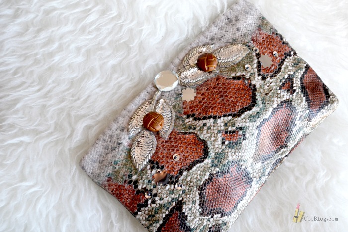 · Cartera de mano (clutch) personalizado por la estilista Yolanda Verona especialmente confeccionado para mí y a la que le ha añadido distintos abalorios (cristal Murano, botones de París, etc).