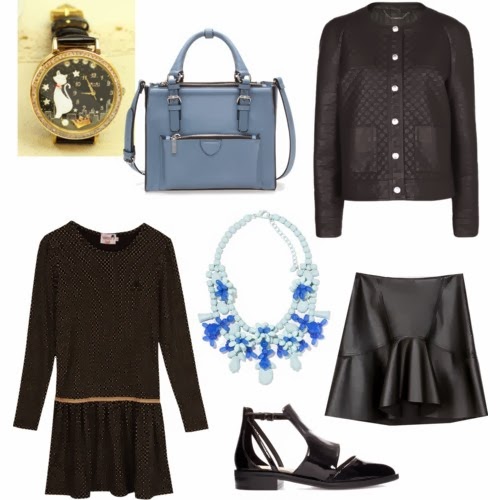 Reloj, de Miniature Watches. Un regalo de mi marido y mi hija por mi cumpleaños. Son preciosos relojes artesanales, hechos a mano, con imágenes en miniatura. En mi caso, no lo dudaron y se fueron directos a por el gatito...Bolso azul bebé, de Zara. Uno de mis caprichos de nueva temporada. Este año le voy a dar mucho uso, me encanta el color, combina muy bien con todo y viene con fuerza para la primavera.Cazadora, de Mango. Chollazo de las rebajas de este año, por menos de 30 euros, esta cazadora, de la pre-colección de primavera que han rebajado al 50%. Me encanta porque mezcla el toque rockero de la piel, con el chic del acolchado y los botones grandes dorados.Vestido negro de lunares, de Dolores Promesas. No me puedo resistir a los vestiditos básicos de algodón de esta marca. Son muy ponibles, van con todo y son comodísimos.Collar azul, de Zara. Ya de nueva temporada, un regalo de cumpleaños al que voy a dar mucho uso esta Primavera - Verano.Falda con volantes de Zara. Es de polipiel y queda monísima, muy favorecedora. Otro regalo de cumpleaños al que le voy a sacar mucho jugo.Botines abiertos, de Zara. Ya lo veremos más adelante, pero los botines y zapatos "cut-out" son uno de los imprescindibles para esta nueva temporada. Yo ya me he hecho con estos de Zara.