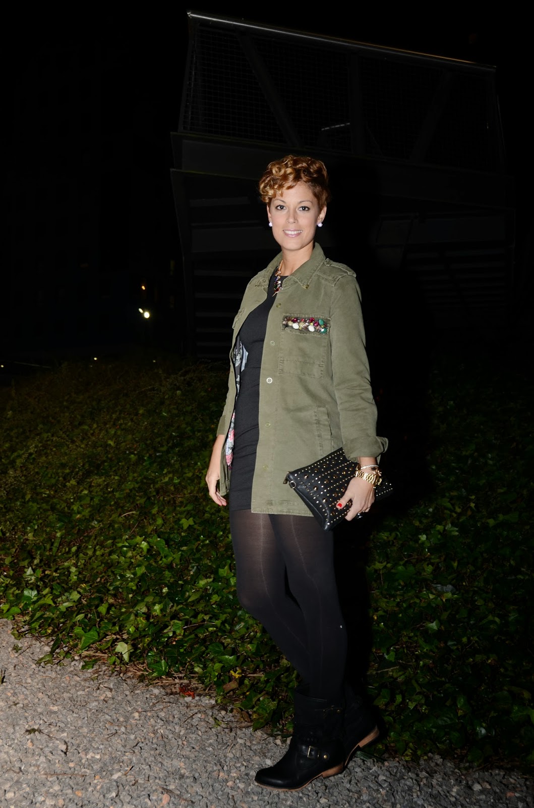 Llevaba un vestido tipo banda, combinado con mi sobre camisa militar con detalles de strass.