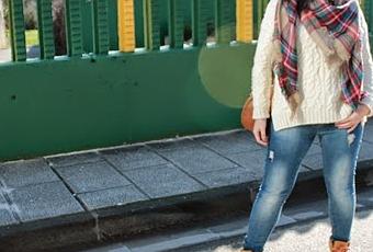 Llevo mi nuevo sweater de lana en blanco roto, jeans claritos y botas Fat Company con tonos rosados como el collar entrenzado. Bufamanta, bolso marrón y parka en verde con mangas de polipiel.