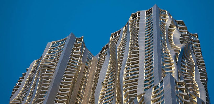 Con una estructura revestida con paneles ondulados de acero inoxidable, crea un exterior dinámico y lleno de fuerza, que parece transformarse según los rayos de sol van incidiendo sobre él a lo largo del día.