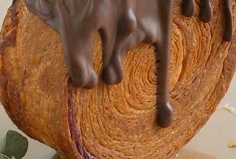 Pasado este tiempo colocamos en la mesa con un poco de harina, poniendo el doblez o lomo al lado izquierdo y volvemos a estirar como antes. Hacemos un pliegue o vuelta doble, que consiste en doblar ambos lados hacia el centro y luego cerramos como un libro. Tapamos con papel film y llevamos a la nevera 30 minutos.