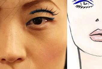 BCBG Max Azria maquillado por Maybelline con un delineado muy fino y separado de la línea de las pestañas; el resto del rostro muy tranquilo y destaca la piel (ya les dije: es una tendencia que está pisando fuerte). Una cola de caballo baja con flequillo de costado acompaña el maquillaje hiper tranquilo.