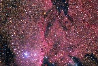 Impresionante imagen de la nebulosa de emisión NGC 6188, situada unos 4.000 años luz de distancia, en la zona del cielo que ocupa la constelación austral El Altar. El color rojo es debido a la emisión de hidrógeno, iluminado por las estrellas masivas, formados recientemente. La nebulosa de emisión está incrustada en una nube molecular oscura y grande. NGC 6188 es una nebulosa de emisión situada a unos 4.000 años luz de distancia en la constelación de Ara . La brillante cúmulo abierto NGC 6193 , visible a simple vista, es responsable de una región de nebulosidad de reflexión dentro de NGC 6188.