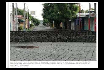 Barrios como Nueva Libia, Santa Rosa, Pedro Aráuz, sector de la rotonda La Virgen, pista Rubenia, entre otros, mantienen barricadas como medida de protesta y de protección de ataques paramilitares. Este miércoles, estos sectores amanecieron intransitables ante la ola de ataques que han sufrido desde el lunes a manos de paramilitares que actúan a la vista de la Policía.