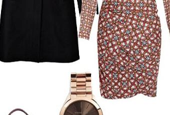 Por eso, nada mejor que este vestido de cuello redondo y estampado geométrico combinado con bolso y zapatos granates, tipo stiletto y con un poco de plataforma en la parte delantera que nos permitirá aguantar jornadas maratonianas. Un abrigo señorial de corte recto y como no, algo que nunca debe faltar en tu muñeca, un buen reloj, este caso de Michael Kors. Siempre he querido un reloj de esta firma. Me parecen perfectos por su sencillo y discreto diseño que aporta una elegancia suprema.