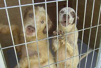 NICOLAS Y OTTO, dos preciosos cachorrones de 10 meses, LLEVAN TODA SU VIDA entre rejas, no conocen mas que el cemento y las rejas de esta jaula. Apenas han salido en su corta vida de este encierro. NO podemos dejarles que pierdan su vida de este modo, sin saber como huele una flor o conocer las caricias de UNA FAMILia.