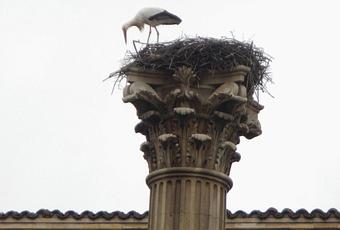 La columna trajana se inauguró en junio de 1968 con motivo del XIX centenario de la creación de la Legión VII Gémina, a la que hasta se atribuía la fundación de la ciudad de León. Es una columna estriada de 28 metros de altura colocada sobre un pedestal en el que hay una placa conmemorativa. Está rematada en un capitel corintio sobre el que hay un nido de cigüeña, que es ocupado cada año. Ésta es una situación un poco inusual si se tiene en cuenta que estos pájaros prefieren la alturas de los campanarios para hacer sus nidos.