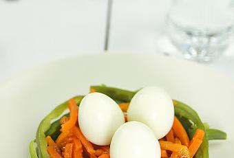 Se que en casa es complicado y a veces nos da pereza ponernos todos los días con las cenas, organizar mochilas, uniformes y la comida del día siguiente pero esta receta tan solo os llevará unos 30 minutos elaborarla y veréis lo felices que haréis a vuestros niños cuando la presentéis en la mesa. Mi propuesta de hoy es bien colorida, rica y sobretodo sana. Se trata de una sencilla ensalada de judías, zanahorias y huevo. Los niños comerán verduras sin enterarse y seguro que a más de una os pedirán que repitáis esta receta una vez por semana.
