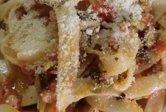 Unimos la pasta con el sofrito, mezclamos bien y servimos en los platos, podemos añadir queso rallado por encima.