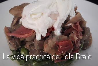 - Laminamos los champiñones e igualmente los rehogamos y añadimos un ajo. Agregamos el jamón y pasados unos minutos rectificamos de sal.