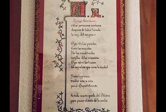 texto hermoso por la delicadeza y maestría con que lo caligrafió. Desde entonces ocupa un rincón muy especial en mi casa. Gracias, amiga, buen viaje. No te olvidaremos.Ruinas circulares