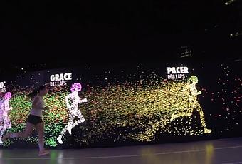 Una gran pantalla de LED a lo largo del recorrido permite que la persona compita contra sí misma después de la primera vuelta. De este modo, el entreno se convierte en una especie de competición contra uno mismo cuyo único objetivo es superarse a sí mismo.