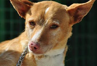 Se llama NINA, es una podenca andaluza de color canela rescatada de la perrera de Huesca. Tiene mucho miedo a las personas, aunque estaba mejorando mucho los meses que llevabaen la residencia. Se lleva muy bien con otros perros, machos y hembras. Muy asustadiza, no se deja tocar, pero si la acorralas en algun sitio y con el cuerpo agachado se somete. No muerde ni saca los dientes nunca. Cuando ve que acaricias otro perro ella busca tambien caricias. Está en tratamiento por leishmania.