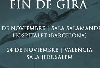 Precisamente para cerrar esta etapa de importante reconocimiento de público, los granadinos anuncian ahora tres últimas fechas en salas: viernes 23 de noviembre en Hospitalet (Barcelona, sala Salamandra), sábado 24 de noviembre en Valencia (sala Jerusalem) y sábado 1 de diciembre en Madrid (sala La Riviera).
