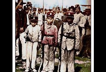 Niños soldados pertenecientes al ejército colombiano, combatientes en la guerra de los mil días (1901-1903).
