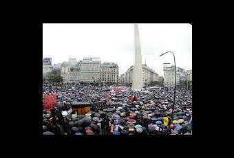 Miles de adherentes caminaron bajo la tormenta desde el Obelisco porteño hasta el Congreso, en el"miércoles negro" que se repicó en todo el país y diversas ciudades del mundo.