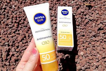 Después de mi fantástica experiencia con el combo antimanchas de Nivea Luminous 360, que ha mantenido a raya mis manchas durante los más de 2 meses que me ha durado, estoy feliz de estar probando ahora la protección facial de Nivea Sun Q10. Con protección solar 50, está diseñada para, además de hidratar la piel, prevenir y combatir la aparición de arrugas, líneas de expresión y manchas provocadas por el sol, gracias a su formulación con coenzima Q10.