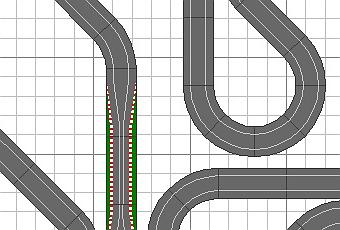 Hago un primer diseño en el que me sobran algunas rectas y medias rectas , sin puentes, descompensado con carriles de 18,05 y 17,56 y dmensiones 2,66 x 2,40.