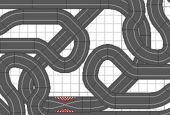 Este es el resultado, un circuito de dimensiones 2,90 x 2,00 (con pistas scalextric un 15% menores) compensado de 28,24m de longitud cada carril, si no ponemos las pistas de cruce en esas posiciones habría casi 2m de diferencia entre cada carril.