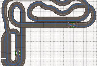 Jotha dijo : Buenas noches Manuel , hace un tiempo me diseñaste un circuito espectacular , pero por problemas de espacio he tenido que reducir el tablero . Ahora se me ha quedado un tablero en forma de L de 2,90 x1m en su parte más larga y 2,36 x 0.80 en la parte más corta . ¿hay algún circuito que pueda acoplar a estas medidas ?las pistas no son problema. Muchas gracias. Te diseño el siguiente circuito con una variante en uno de los puentes para no usar curvas exteriores.