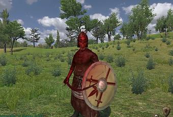 Ejemplo de personaje femenino en el Warband. Después de una batalla, claro, de ahí el rojo.