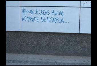 Es por eso que, como profe de Historia, suscribo la pintada. Hij@, no le creas nada al profe de historia. Eso sí, exígele que te explique las cosas, que te las razone, que no te venda nada que no sea capaz de argumentar convincentemente.