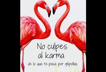Cada vez que veía la portada me preguntaba por qué aparecían esos flamencos tan rosas y que tenía que ver las pobres criaturas con el karma o con ser gilipollas. Después de la lectura ya me ha quedado claro el gran valor de sus plumas para la autora y la protagonista de esta novela. Este libro me tocó hace mucho tiempo en un sorteo bloguero y cómo suelo leer sólo un libro de este estilo al año, ahí llevaba esperando su turno veraniego. Porque no me cabe duda de que este tipo de literatura es para el verano; una lectura fresca, sin complicaciones aunque todo lo que ocurre es tan exagerado que todo es pura complicación en la vida de los personajes; y una lectura graciosa y eso que yo soy de las que me río más bien poco con las novelas. No obstante, tengo que reconocer que me he reído y mucho con esta novela. No ha sido una sonrisa constante, ni una gracia permanente a lo largo de la lectura, pero si es cierto que en más de una ocasión me ha pillado descuidada más de una carcajada que salía de mi interior. Tanta tontería me suele crispar pero los puntos en momentos en que no los esperas a mi me sacan las lágrimas con la risa.