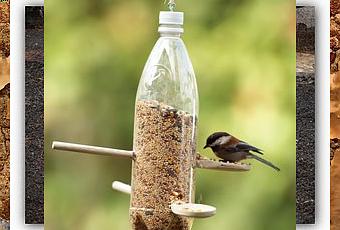 Una propuesta tan simple como reutilizar alguna botella o envase, añadirle algún tipo de varillas para que los pájaros se aguanten y aplicar algún que otro orificio para que estos animales tengan acceso a su alimento.