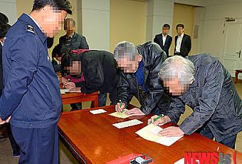 Muy ilusionados y satisfechos, pensaron que si ellos fueran a Corea del Norte iban a ser recibidos como héroes y camaradas destacados. Entre los años 2009 y 2010, cogieron un crucero que pasaba por los ríos Yalu y Tumen y bajaron por propia voluntad. Pero el resultado fue distinto. La presencia de unos desconocidos incordiaban a los soldados norcoreanos que fueron encarcelados inmediatamente en cárceles de ciudades como Wonsan, Sinuiju, Hoeryong y Onseong. Aguantaban durante largos meses tormentos verbales y vieron que sus cuerpos empezaban a debilitarse por no ingerir suficiente comida. Al final, fueron llevados al campo de concentración de Wonsan. A algunos se les cayeron los dientes y el peso corporal medio de estas seis personas era de 40 kilogramos.