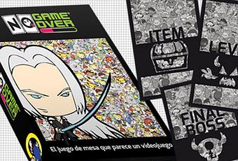 No Game Over es un juego de cartas en el que se mezcla el rol y los videojuegos, se trata de un juego para 2 a 6 jugadores en el que hay dos formas de ganar, ser el único superviviente o ser lo suficientemente poderoso para vencer a un jefe final.