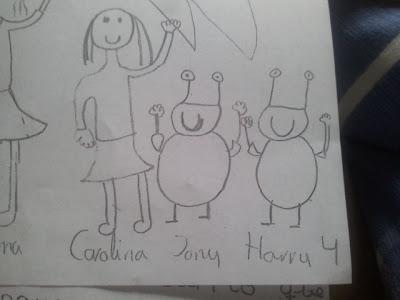 Jony le dijo a Carolina que cual era su fiesta favorita Carolina contestó que su fiesta favorita era la Navidad pero Jony y harry no sabían lo que era la Navidad. Al llegar a casa de los extraterrestres fueron muy silenciosos para que los padres no les descubrieran. Carolina les dijo que era la navidad, a los extraterrestres les gustó la idea de celebrar la navidad. Carolina también les dijo lo que era un día, mes y año y que la Navidad se celebraba el 25 de diciembre y que se celebraba en familia y que ellos se iban a ser mañana para celebrar la Navidad. Al día siguiente se despidieron de Jony y Harry ese día todo el mundo de todas las galaxias celebraron la Navidad. FIN.