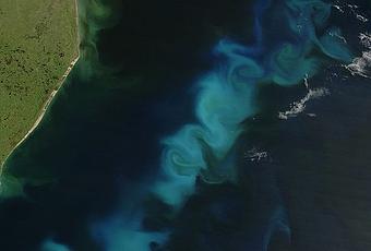 Florecimiento de fitoplancton en las costas argentinas.